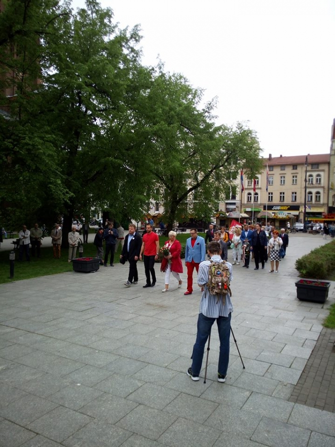 W Grudziądzu organizacje, które są dumne z robotników i Unii Europejskiej (SLD, Forum Równych Szans i Praw Kobiet SLD, OPZZ, .Nowoczesna, Obyatelski Grudziądz) przybyły pod Pomnik Pomordowanych aby uczcić to święto.